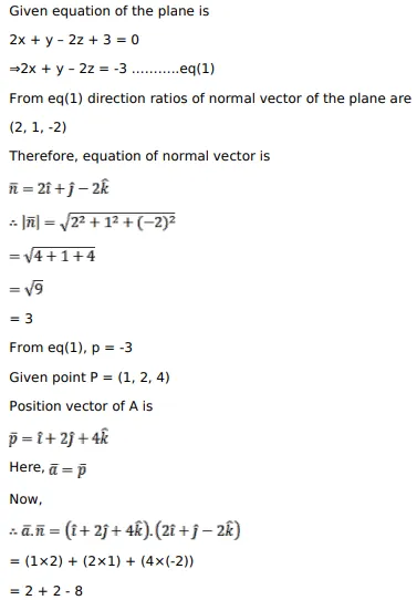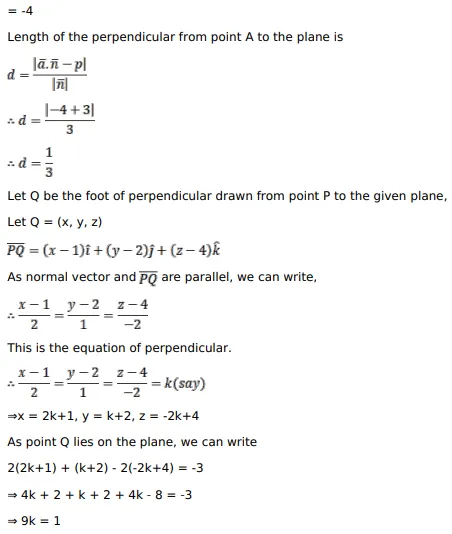 From the point $P(1,2,4)$, a perpendicular is drawn on the plane $2 x+y-2 z+3=0$. Find the equation, the length and the coordinates of the foot of the perpendicular.