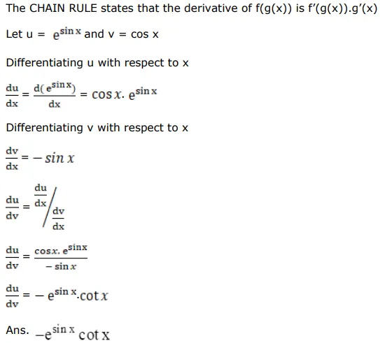 Differentiate $e^{\sin x}$ with respect to $\cos X$.