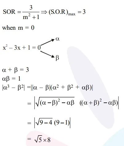 Question: If $m$ is chosen in the quadratic equation $\left(m^{2}+1\right)$ $x^{2}-3 x+\left(m^{2}+1\right)^{2}=0$ such that the sum of its roots is greatest, then the absolute difference of the cubes of its roots is :-