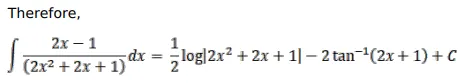 $\int \frac{(2 x-1)}{\left(2 x^{2}+2 x+1\right)} d x$