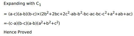 Prove that $\left|\begin{array}{lll}1 & a^{2}+b c & a^{3} \\ 1 & b^{2}+c a & b^{3} \\ 1 & c^{2}+a b & c^{3}\end{array}\right|=-(a-b)(b-c)(c-a)\left(a^{2}+b^{2}+c^{2}\right)$