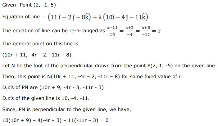 $\overrightarrow{\mathrm{r}}=(11 \hat{\mathrm{i}}-2 \hat{\mathrm{j}}-8 \hat{\mathrm{k}})+\lambda(10 \hat{\mathrm{i}}-4 \hat{\mathrm{j}}-11 \hat{\mathrm{k}})$