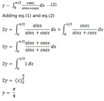 $\int_{0}^{\pi / 2} \frac{\mathrm{dx}}{(1+\cot \mathrm{x})}=\frac{\pi}{4}$