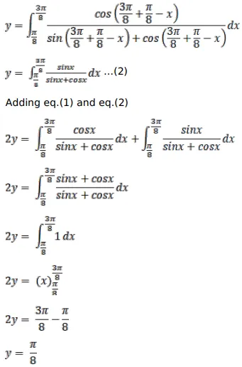 $\int_{\pi / 8}^{3 \pi / 8} \frac{\cos x}{(\cos x+\sin x)} d x=\frac{\pi}{8}$