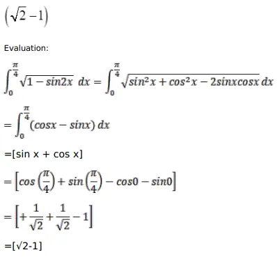 $\int_{0}^{\pi / 4} \sqrt{1-\sin 2 x} d x$