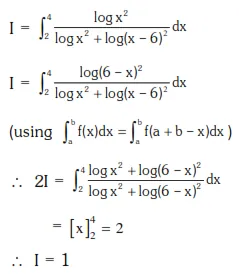 The integral $\int_{2}^{4} \frac{\log x^{2}}{\log x^{2}+\log \left(36-12 x+x^{2}\right)} d x$ is equal to :