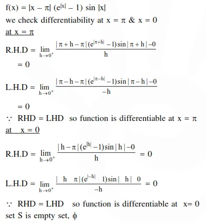 Let $S=\left\{t \in R: f(x)=|x-\pi| \cdot\left(e^{|x|}-1\right) \sin |x|\right.$ is not differentiable at $\left.t\right\}$. Then the set $S$ is equal to: