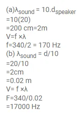 (a)Calculate the frequency for which the wavelength of sound in air is ten times the diameter of the speaker if the diameter is $20 \mathrm{~cm}$.