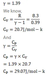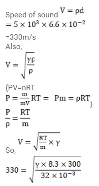 Standing waves of frequency $5.0 \mathrm{kHz}$ are produced in a tube filled with oxygen at $300 \mathrm{~K}$, The separation between the consecutive nodes is $3.3 \mathrm{~cm}$. Calculate the specific heat capacities $C_{p}$ and $C_{v}$ of the gas.