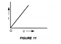 Plot a graph between V and I by taking V along X-axis and I along Y-axis. We get a straight line passing through origin as shown in figure 11.