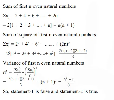 Statement-1 : The variance of first $n$ even natural numbers is $\frac{n^{2}-1}{4}$
