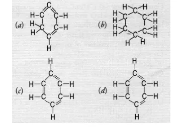 (c). The carbon atom skeleton in benzene has alternate single and double bonds