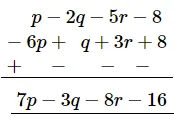 −6p + q + 3r + 8 from p − 2q − 5r − 8