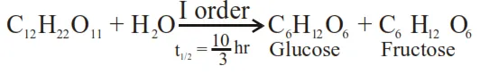 Sucrose hydrolyses in acid solution into glucose and fructose following first order rate law with a half-life of $3.33 \mathrm{~h}$ at $25^{\circ} \mathrm{C}$. After $9 \mathrm{~h}$, the fraction of sucrose remaining is $f$. The value of $\log _{10}\left(\frac{1}{f}\right)$ is $\times 10^{-2}$. (Rounded off to the nearest integer)