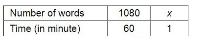 $\Rightarrow \frac{1080}{x}=\frac{60}{1}$