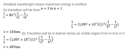 List the wavelength emitted by hydrogen in the visible range ( $380 \mathrm{~nm}$ to $780 \mathrm{~nm})$.