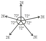 Let $\mathrm{E}$ be electric field produced by each charge at the centre, then resultant electric field will be