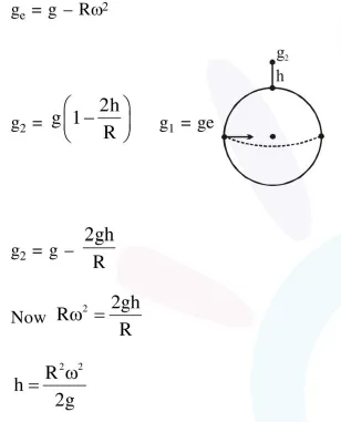 The acceleration due to gravity on the earth's surface at the poles is $\mathrm{g}$ and angular velocity of the earth about the axis passing through the pole is $\omega$. An object is weighed at the equator and at a height $\mathrm{h}$ above the poles by using a spring balance. If the weights are found to be same, then $h$ is : $(h<