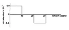 The acceleration of a cart started at t=0, varies with time as shown in the given figure. Find the distance travelled in 30 seconds and draw the position-time graph.