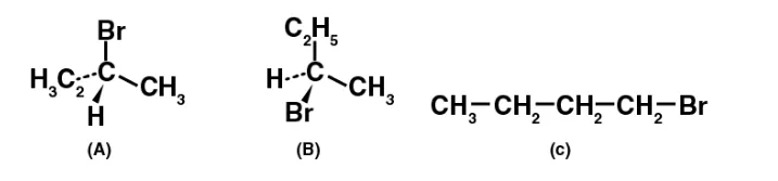 The addition of HBr to 1-butene gives a mixture of products A, B and C
