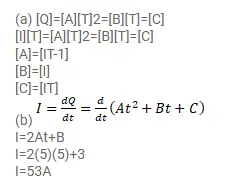 (b) If the numerical value of $A, B$ and $C$ are 5,3 and 1 respectively in SI units, find the value of current at $t=5 s$.