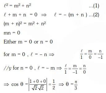 Question: The angle between the lines whose direction cosines satisfy the equations $\ell+\mathrm{m}+\mathrm{n}=0$ and $\ell^{2}=\mathrm{m}^{2}+\mathrm{n}^{2}$ is :