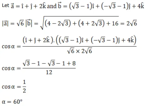 The angle between two lines having direction ratios $1,1,2$ and $(\sqrt{3}-1),(-\sqrt{3}-1), 4$ is