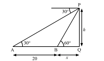 $\mathrm{AB}=20 \mathrm{~m}, \angle \mathrm{PAQ}=30^{\circ}$ and $\angle \mathrm{PBQ}=60^{\circ}$
