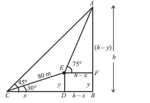 Let height $(A B)=h \mathrm{~m}, C D=x \mathrm{~m}$ and $E D=y \mathrm{~m}$