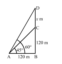 $\mathrm{AB}=120 \mathrm{~m}, \angle \mathrm{BAC}=45^{\circ}, \angle \mathrm{BAD}=60^{\circ}$