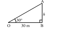 $\Rightarrow h=\frac{30}{\sqrt{3}} \times \frac{\sqrt{3}}{\sqrt{3}}=\frac{30 \sqrt{3}}{3}=10 \sqrt{3} \mathrm{~m}$