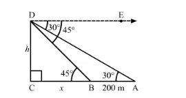 $\Rightarrow h=\frac{200(\sqrt{3}+1)}{2}=100(\sqrt{3}+1) \mathrm{m}$