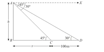 $\Rightarrow h=\frac{100}{\sqrt{3}-1} \times \frac{\sqrt{3}+1}{\sqrt{3}+1}$