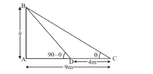 $\Rightarrow \quad \tan \theta=\frac{9}{h}$