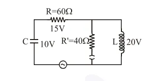 The angular frequency of alternating current in a L-C-R circuit is $100 \mathrm{rad} / \mathrm{s}$. The components connected are shown in the figure. Find the value of inductance of the coil and capacity of condenser.