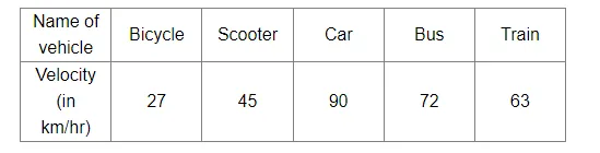 Take the name of vehicle along the x-axis and the velocity along the y-axis.