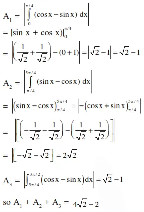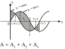 The area bounded by the curves $y=\cos x$ and $y=\sin x$ between the ordinates $x=0$ and $x=$ $\frac{3 \pi}{2}$ is :-