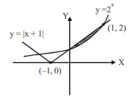 The area (in sq. units) of the region bounded by the curves $y=2^{x}$ and $y=|x+1|$, in the first quadrant is: