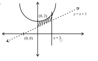 The area (in sq. units) of the region bounded by the parabola, $y=x^{2}+2$ and the lines, $y=x+1, x=0$ and $x=3$, is :