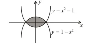 Area $=2 \int_{0}^{1}\left(\left(1-x^{2}\right)-\left(x^{2}-1\right)\right) d x=4 \int_{0}^{1}\left(1-x^{2}\right) d x$