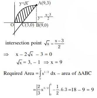 The area (in square units) bounded by the curves $y=\sqrt{x}, 2 y-x+3=0, x$-axis and lying in the first quadrant is :