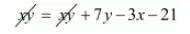 $x y=x y+7 y-3 x-21$
