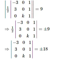 $\Rightarrow\{-3(0-k)-0(3)+1(3 k)\}=\pm 18$