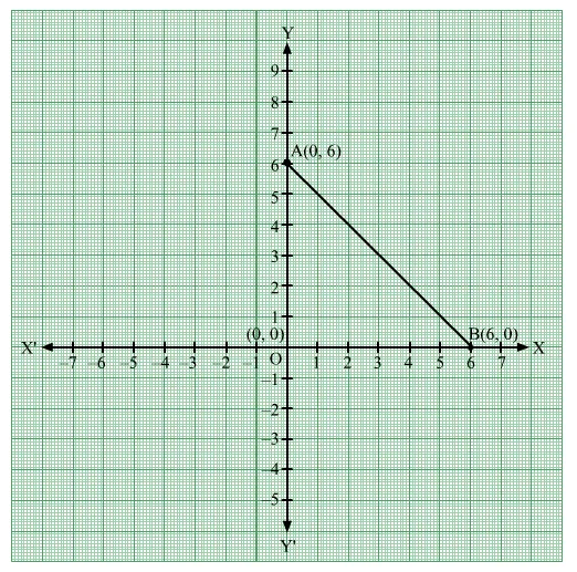 $\therefore$ Area of $\Delta \mathrm{AOB}=\frac{1}{2} \times \mathrm{OA} \times \mathrm{OB}=\frac{1}{2} \times 6 \times 6=18$ square units