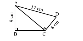 $A C=\sqrt{\left(17^{2}-8^{2}\right)}=\sqrt{225}=15 \mathrm{~cm}$