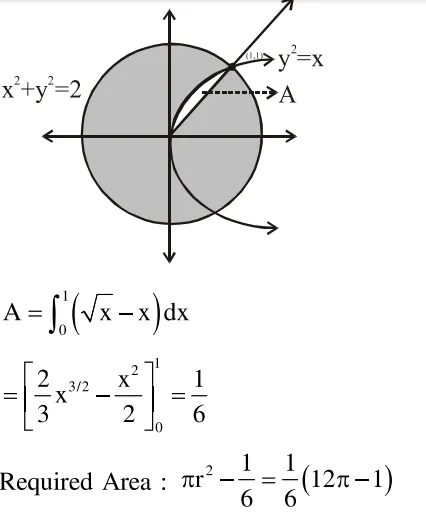 Question: The area of the region, enclosed by the circle $x^{2}+y^{2}=2$ which is not common to the region bounded by the parabola $\mathrm{y}^{2}=\mathrm{x}$ and the straight line $\mathrm{y}=\mathrm{x}$, is :