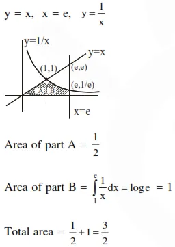 The area of the region enclosed by the curves $y=x, x=e, y=\frac{1}{x}$ and the positive $x$-axis is:-