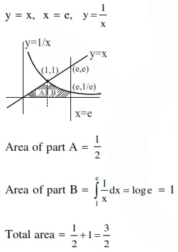 The area of the region enclosed by the curves $y=x, x=e, y=\frac{1}{x}$ and the positive $x$-axis is:-