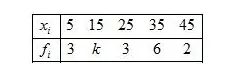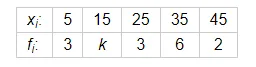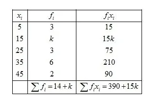 The arithmetic mean of the following data is 25, find the value of k.
