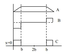 from $x=2 b$ to $x=0$ as shown in the figure. $A$